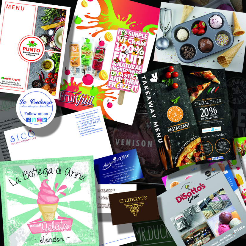 Menus · Leaflets · Brochures · Posters · Signs · Labels · Stationery · Logos